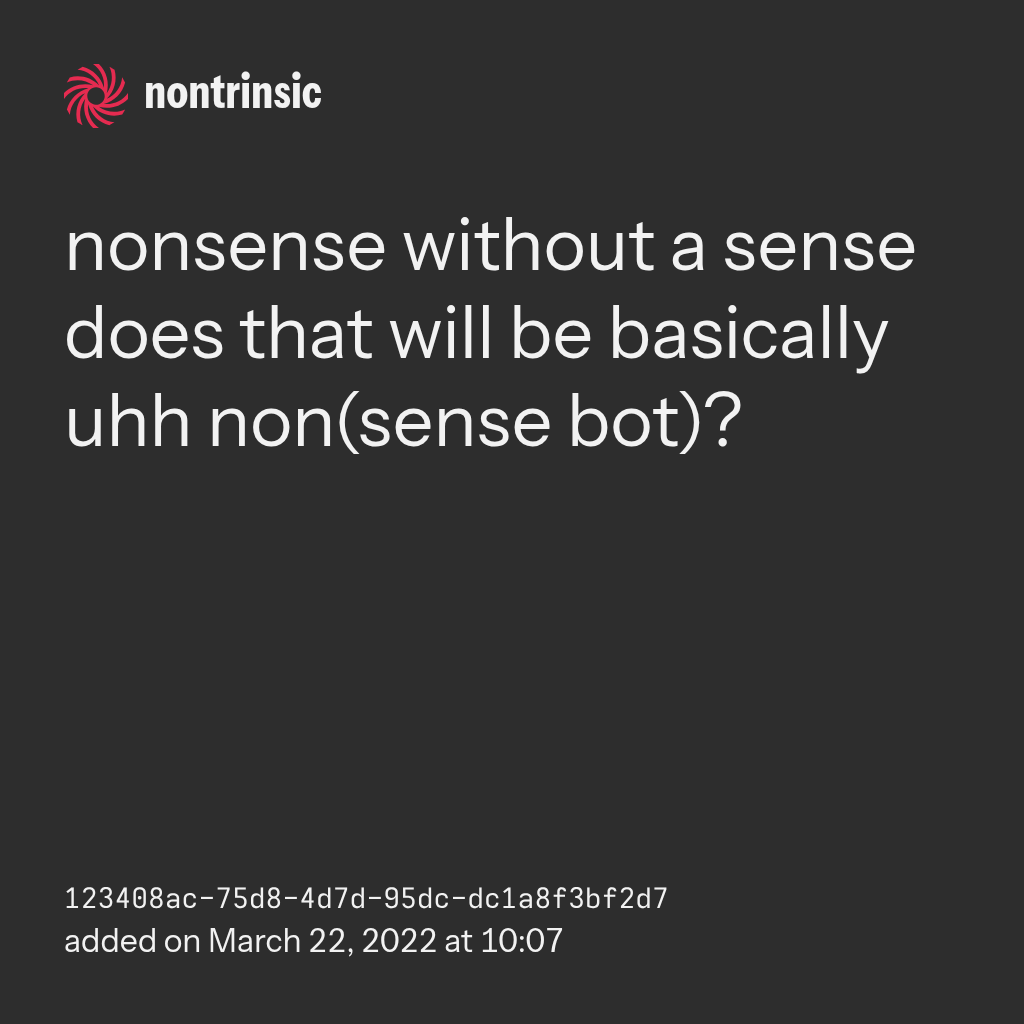 поделитьсяHey Visitor! So far, you have read ~2269 nonsense. It may be less or more since we do not track how many nonsense you have read.