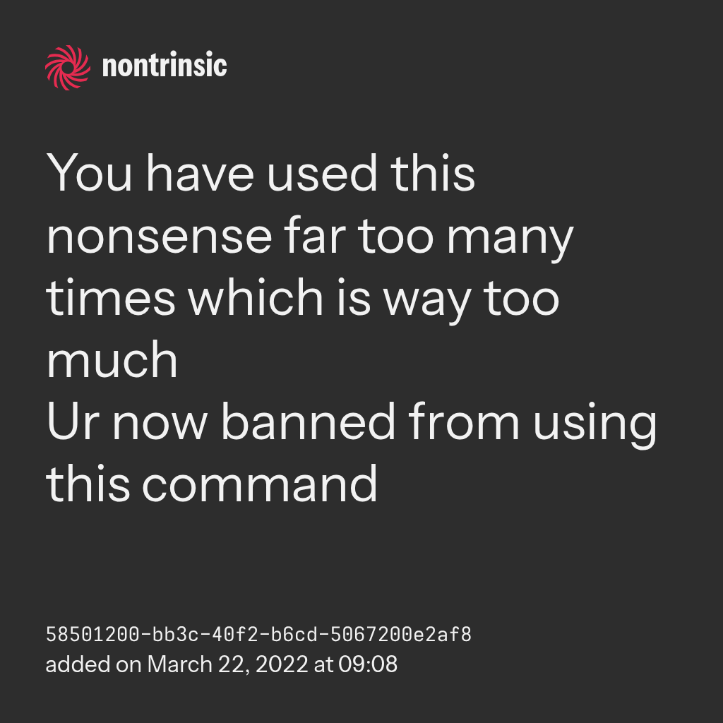 поделитьсяYou have used this nonsense far too many times which is way too much