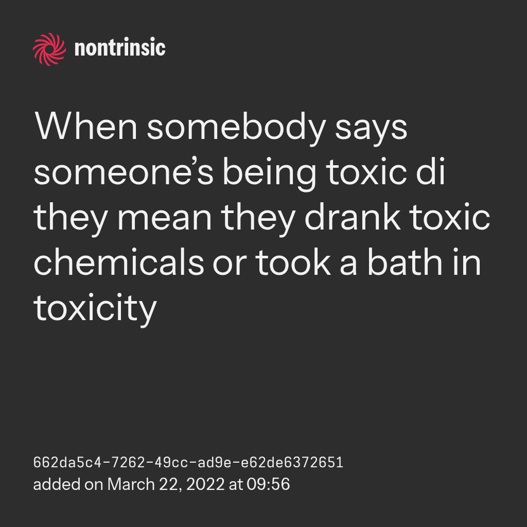 поделитьсяWhen somebody says someone’s being toxic di they mean they drank toxic chemicals or took a bath in toxicity