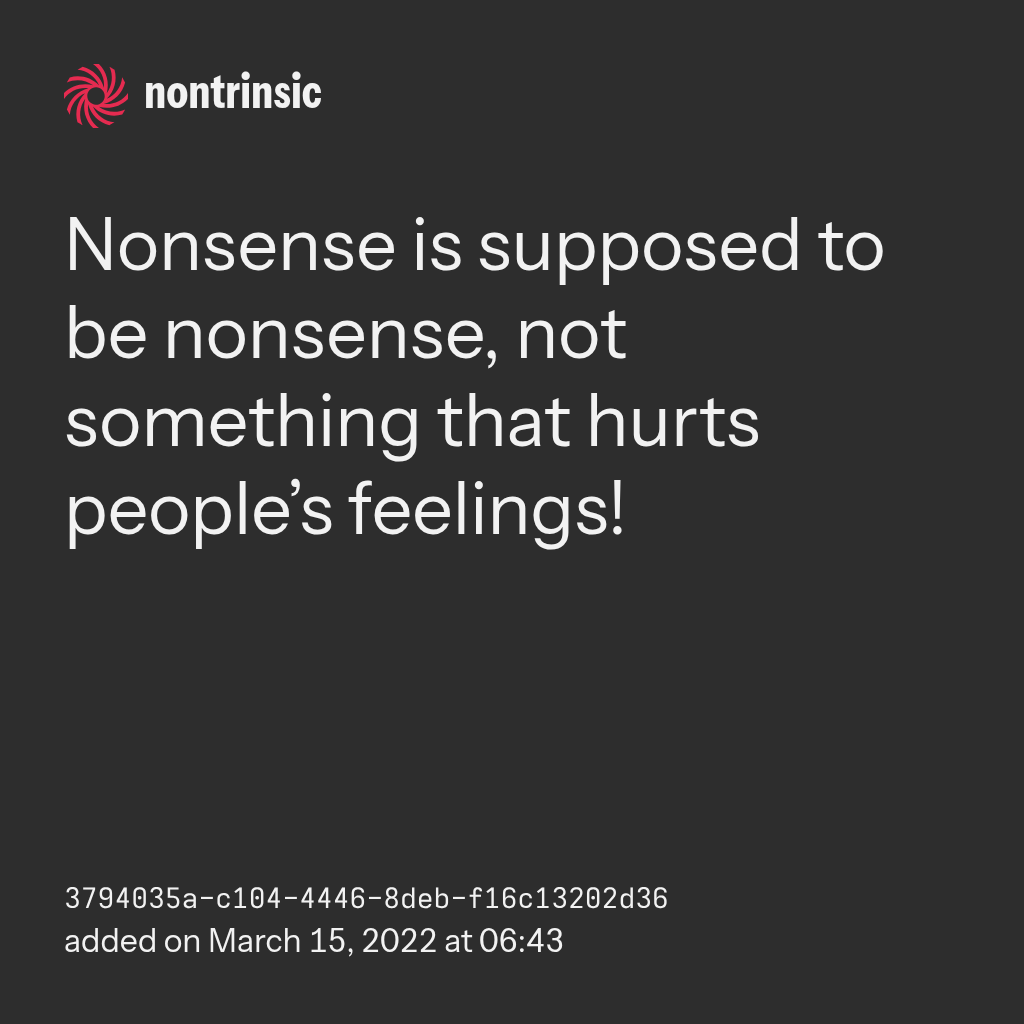 поделитьсяNonsense is supposed to be nonsense, not something that hurts people’s feelings!