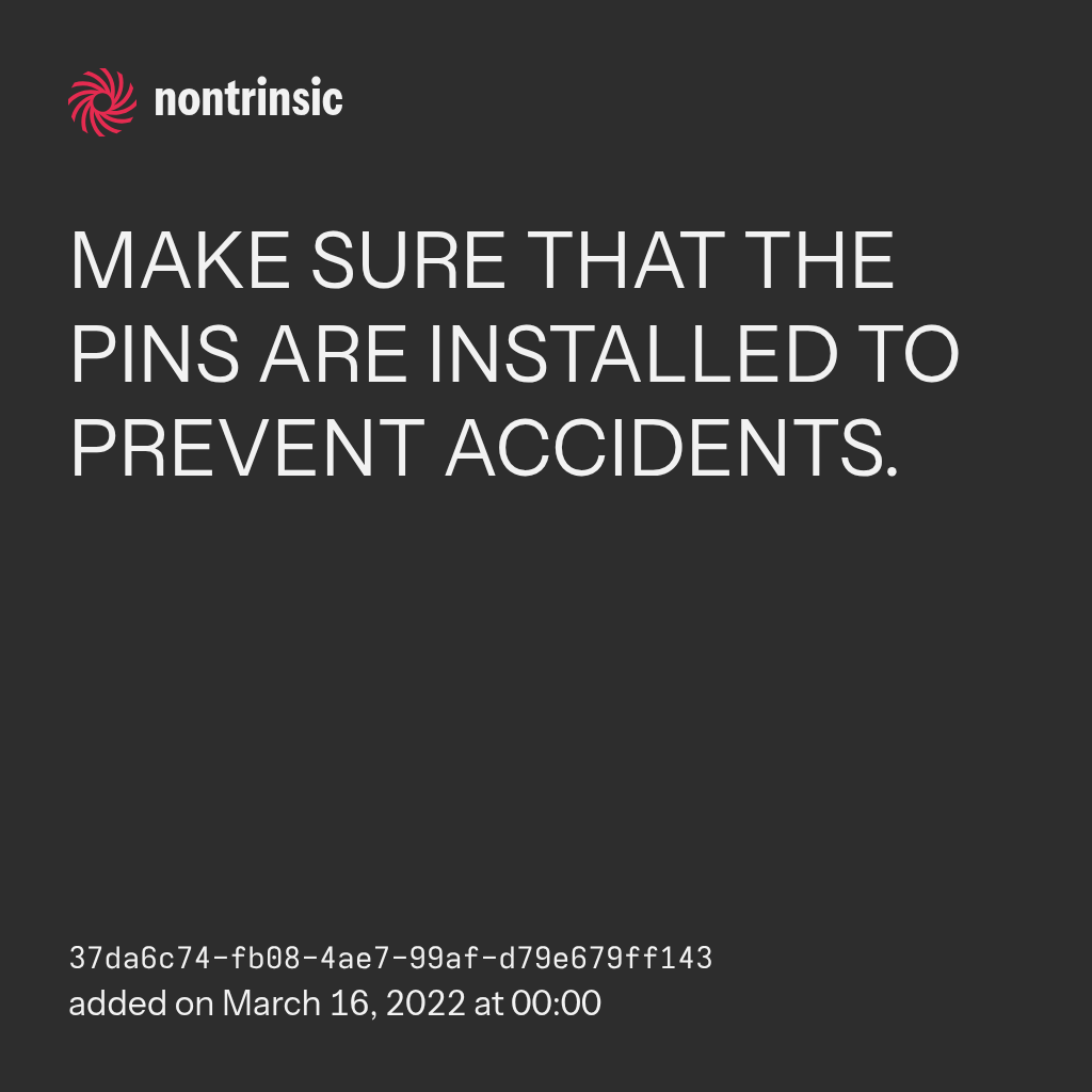 поделитьсяMAKE SURE THAT THE PINS ARE INSTALLED TO PREVENT ACCIDENTS.