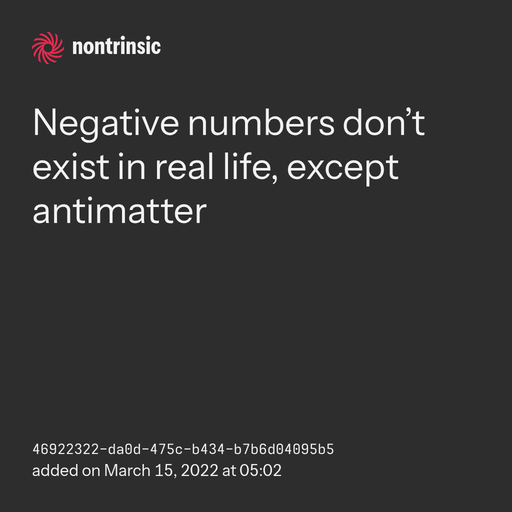 поделитьсяNegative numbers don’t exist in real life, except antimatter