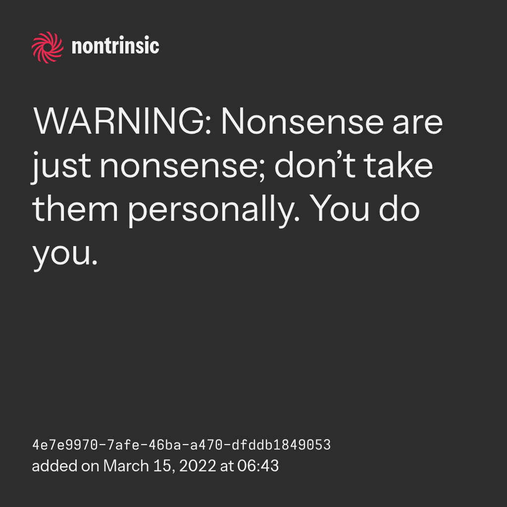 поделитьсяWARNING: Nonsense are just nonsense; don’t take them personally. You do you.