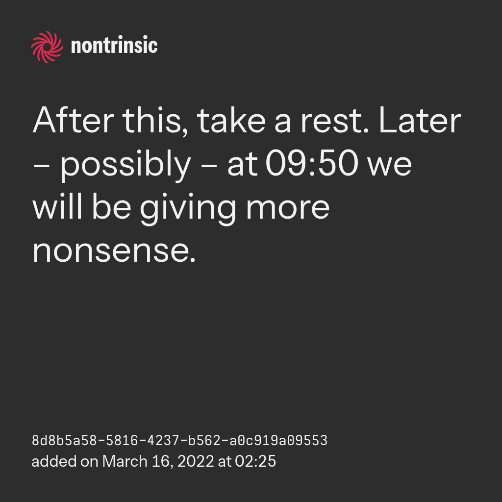 поделитьсяAfter this, take a rest. Later – possibly – at 09:50 we will be giving more nonsense.