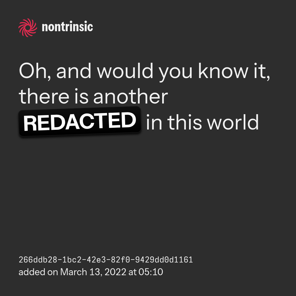 поделитьсяOh, and would you know it, there is another REDACTED in this world