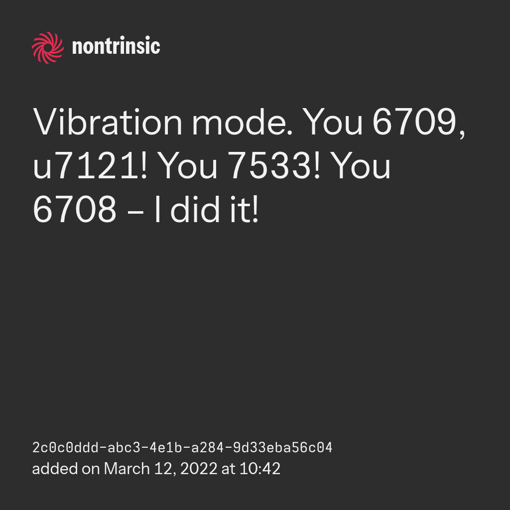 поделитьсяVibration mode. You 6709, u7121! You 7533! You 6708 – I did it!