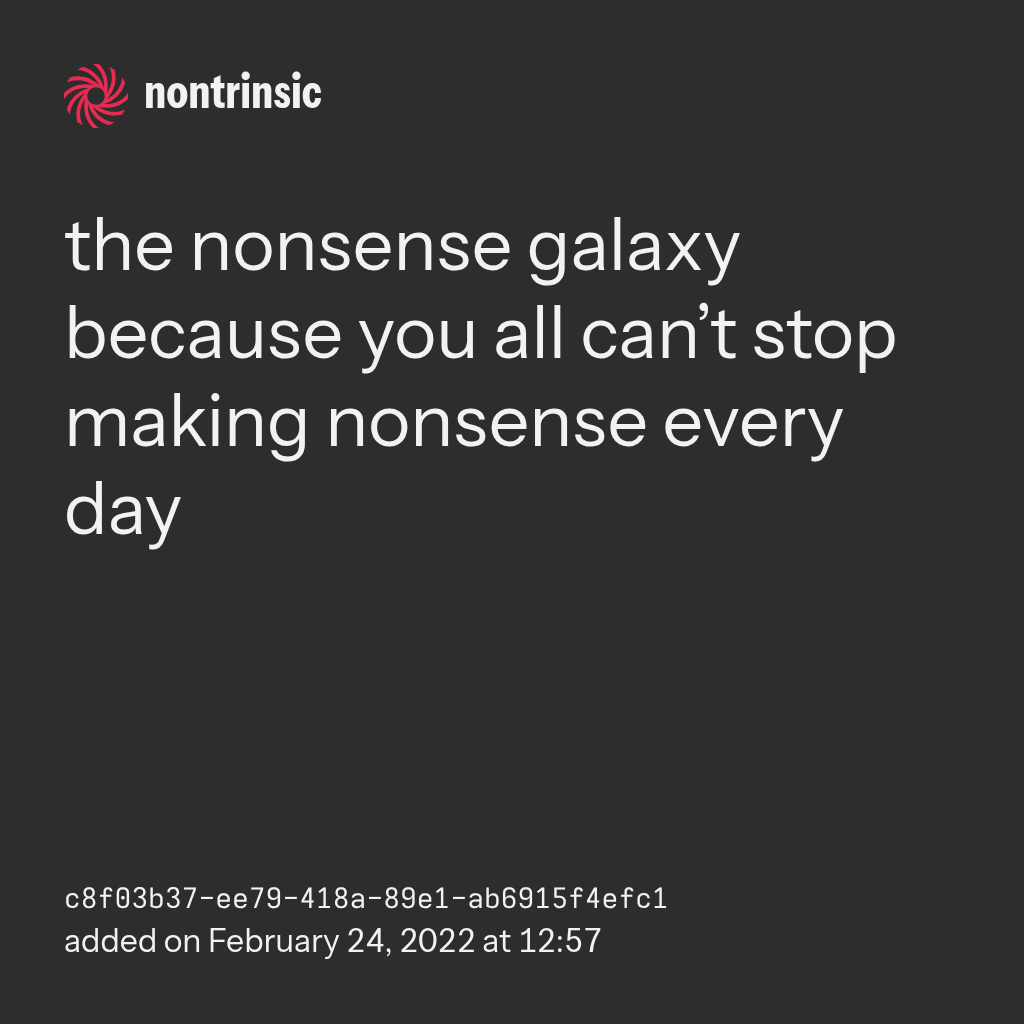 поделитьсяthe nonsense galaxy because you all can’t stop making nonsense every day