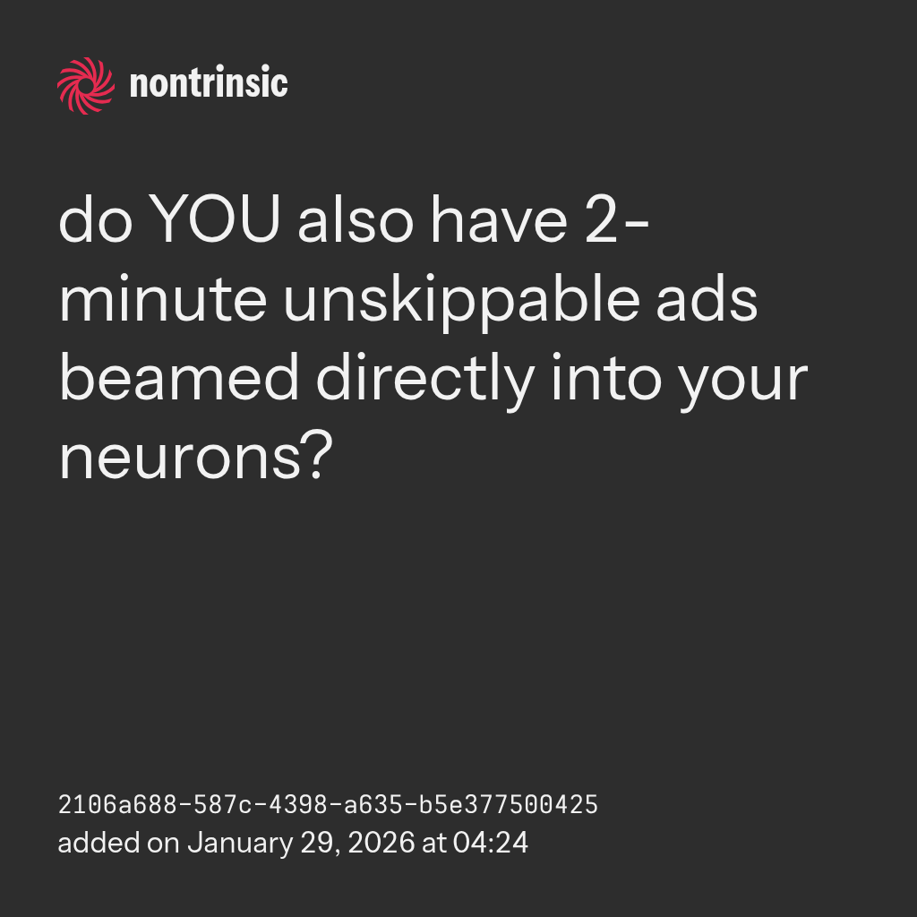 поделитьсяdo YOU also have 2-minute unskippable ads beamed directly into your neurons?