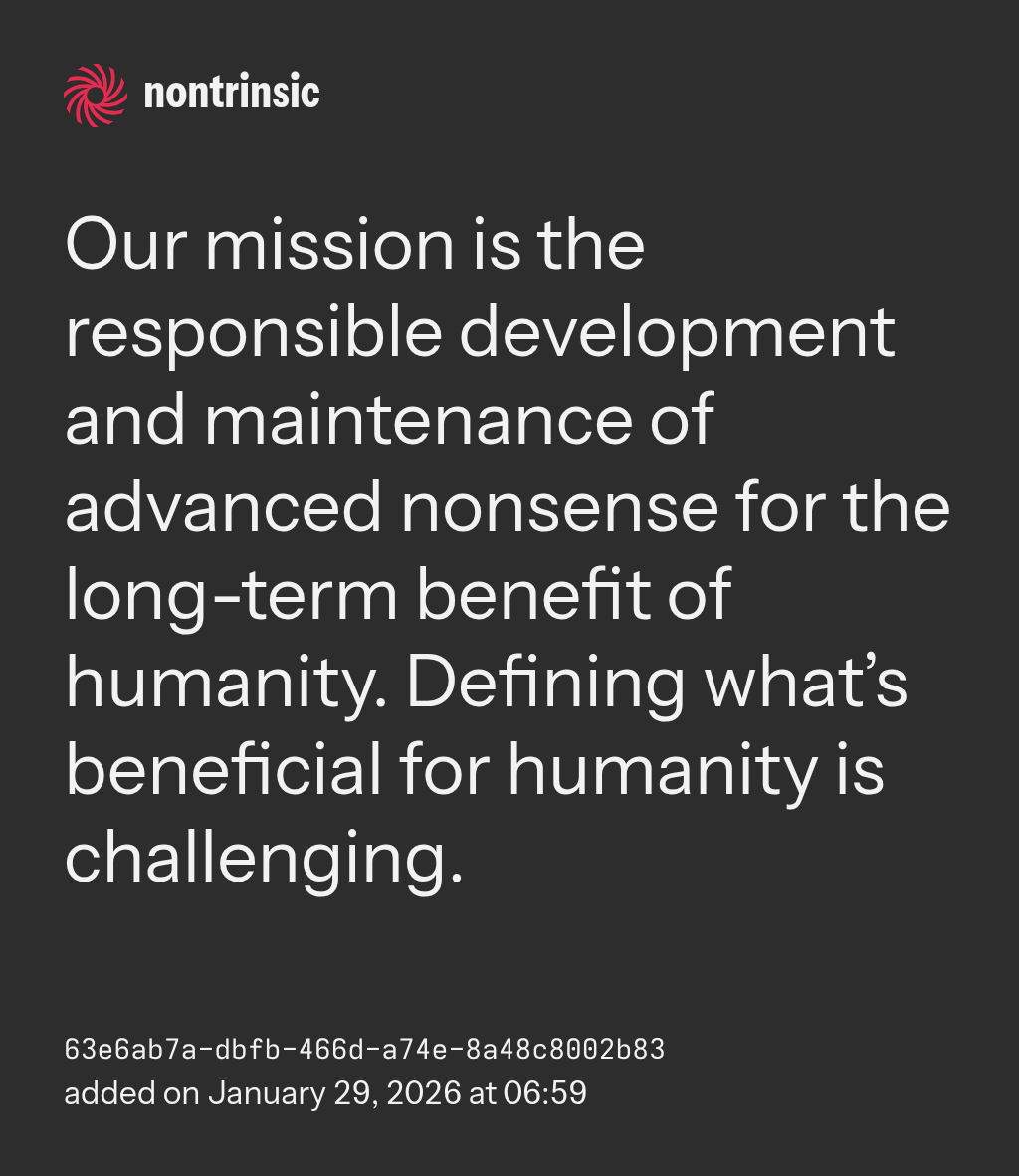 поделитьсяOur mission is the responsible development and maintenance of advanced nonsense for the long-term benefit of humanity. Defining what’s beneficial for humanity is challenging.