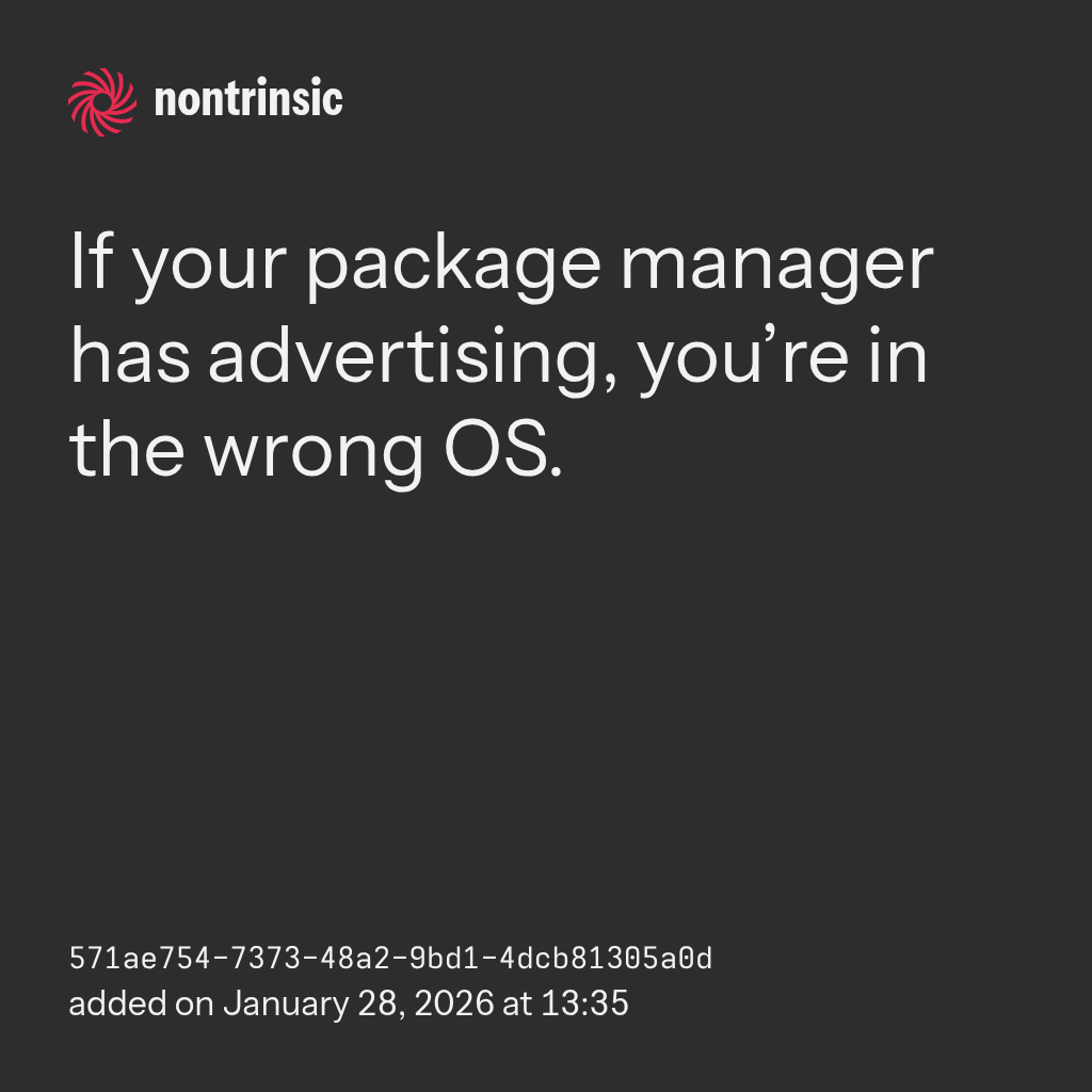 поделитьсяIf your package manager has advertising, you’re in the wrong OS.
