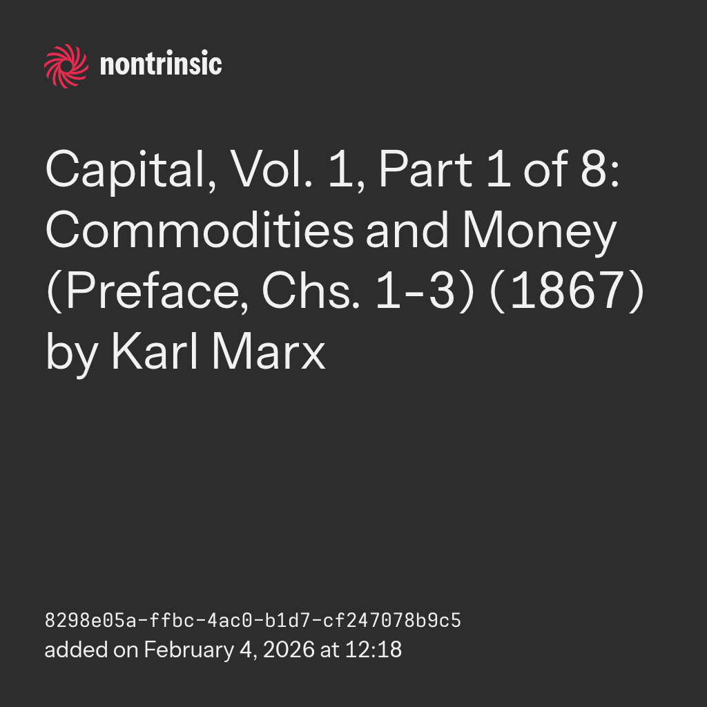 поделитьсяCapital, Vol. 1, Part 1 of 8: Commodities and Money (Preface, Chs. 1-3) (1867) by Karl Marx