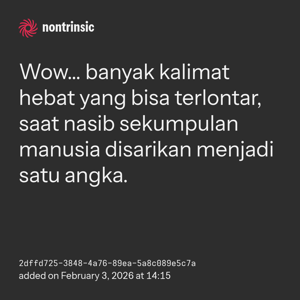 поделитьсяWow… banyak kalimat hebat yang bisa terlontar, saat nasib sekumpulan manusia disarikan menjadi satu angka.