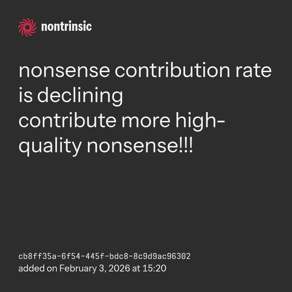 - The original founder of the nonsense database, Artifyber, uses an export of the nonsense database from Nontrinsic in her website’s nonsense ticker: https://artifyber.xyz/e/nansenz