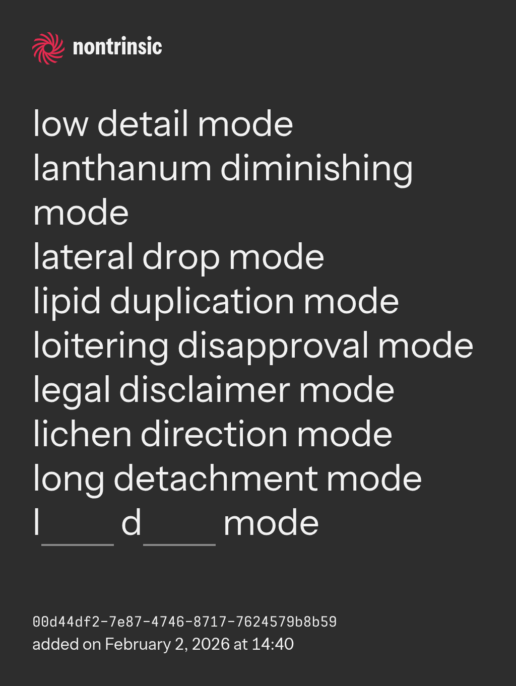 everything in space and time is governed by the nonsense force and nonsense entries
