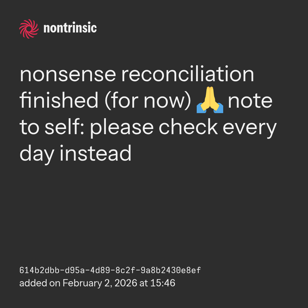 поделитьсяnonsense reconciliation finished (for now) 🙏 note to self: please check every day instead