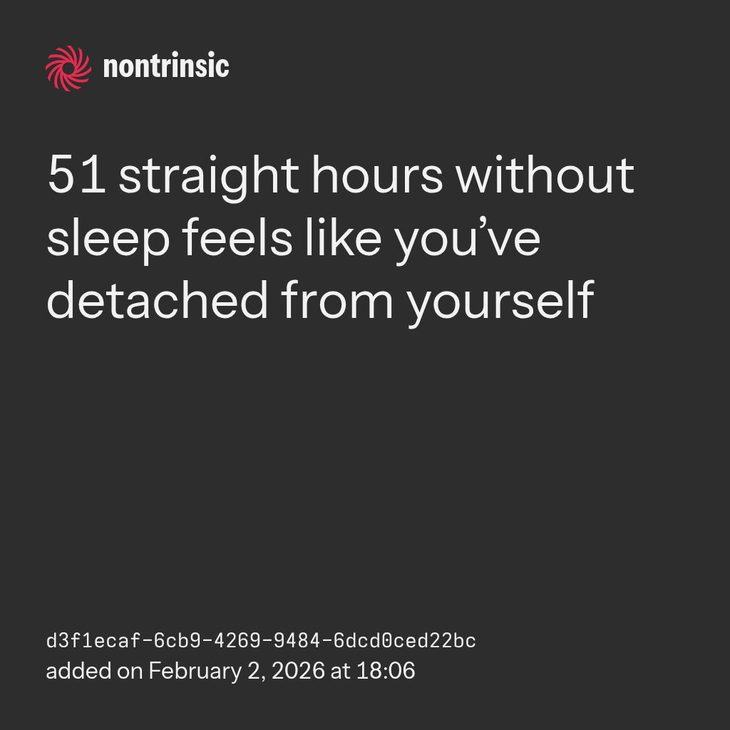 поделиться51 straight hours without sleep feels like you’ve detached from yourself